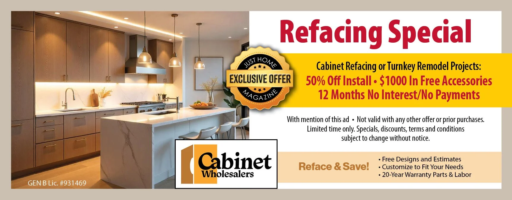Since 2004, Cabinet Wholesalers Kitchen & Bath has been helping Orange County homeowners refresh their kitchens and bathrooms with expert cabinet refacing services. This family-owned company is known for providing more of everything—more attention, more design options, and more savings—without ever compromising on quality. Every veneer, door, and drawer is crafted from premium materials, and installed with precision craftsmanship.