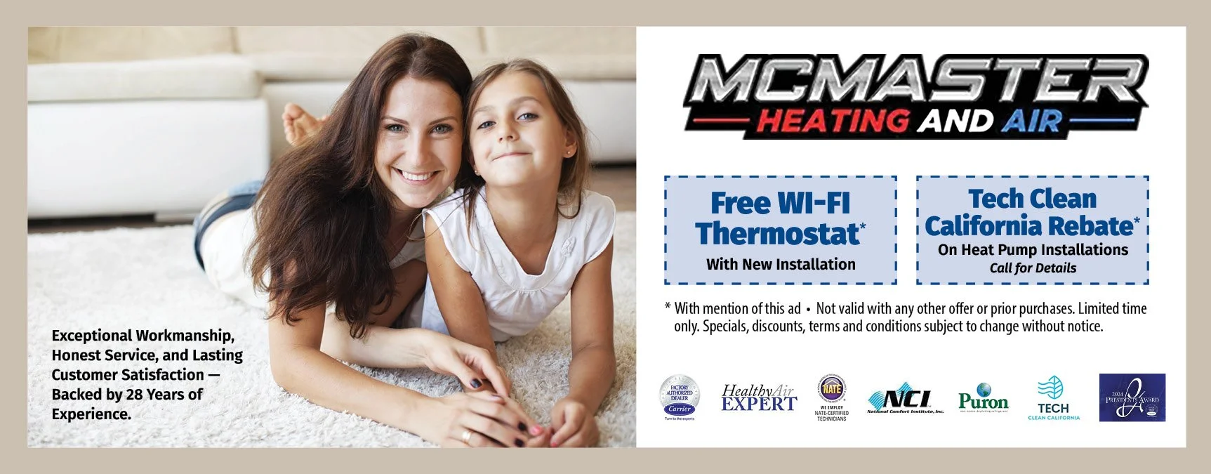 For nearly three decades, McMaster Heating & Air Conditioning has been Orange County’s trusted choice for reliable HVAC services. Serving Irvine, Newport Beach, Mission Viejo, Laguna Niguel, Anaheim, Yorba Linda, and beyond, McMaster has built a reputation for exceptional workmanship, honest service, and lasting customer satisfaction.