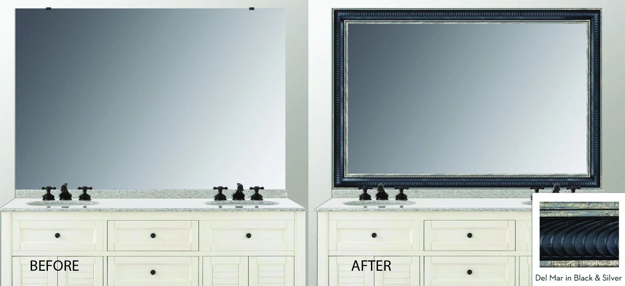 You can be assured that we are focused on these two very important things to win your business and assure your happiness. MirrorChic will treat you like a VIP and you will always receive the personal one-on-one help and assistance you deserve. Our mirror frames WILL transform your bathroom, and you will be totally delighted with the results, we promise!