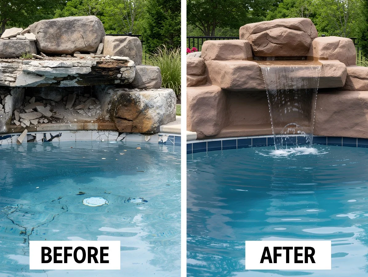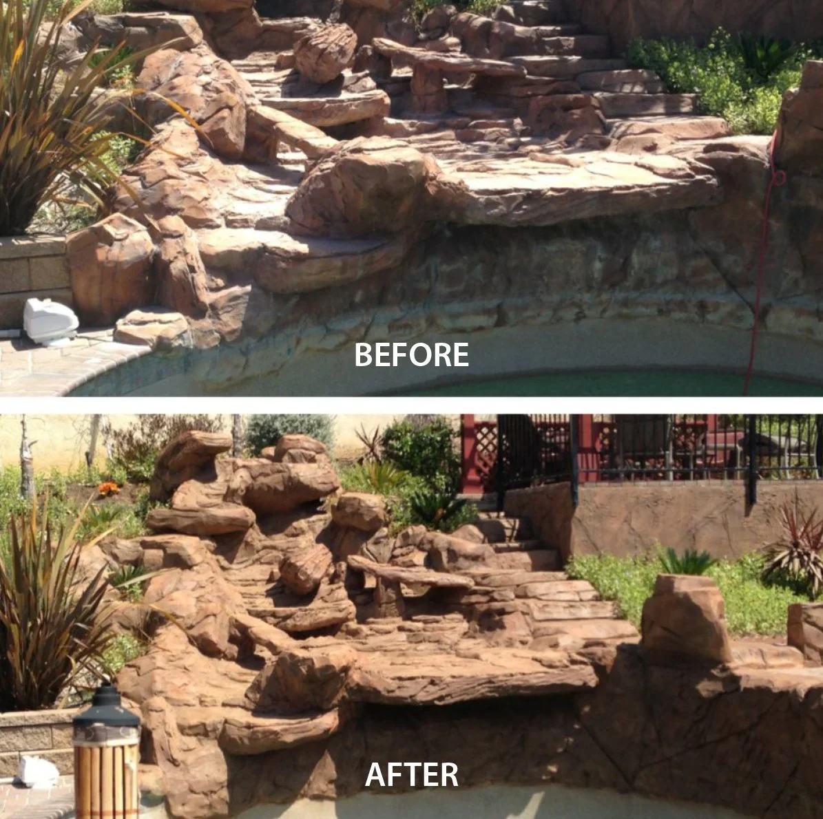Synthetic rockwork is very common in backyard pools, but the paint, which is used to replicate natural color of rocks, tends to fade away with time.Expert Acid Wash