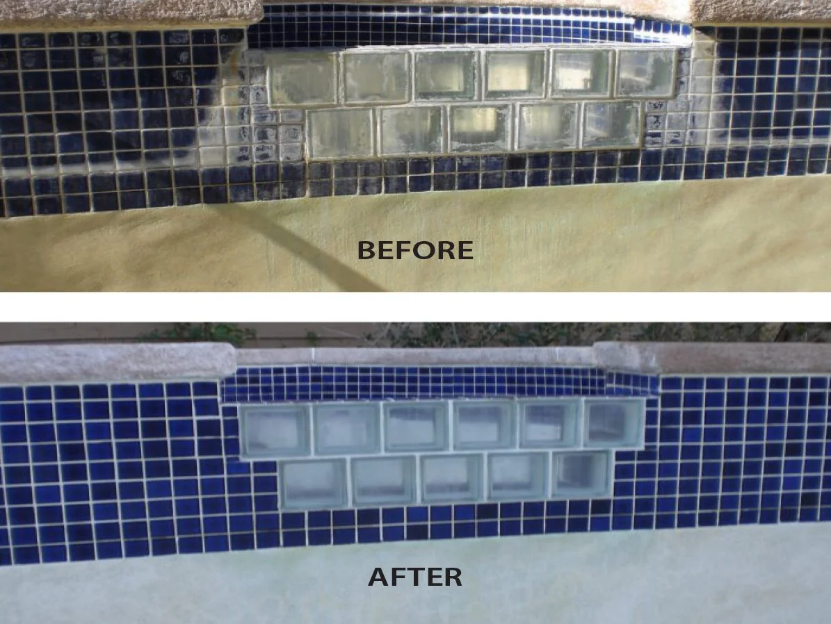 Safe, non-abrasive calcium and stain removal from tile, rock, and brick—without draining the pool—leaving it ready to use the next day.Tile Repair